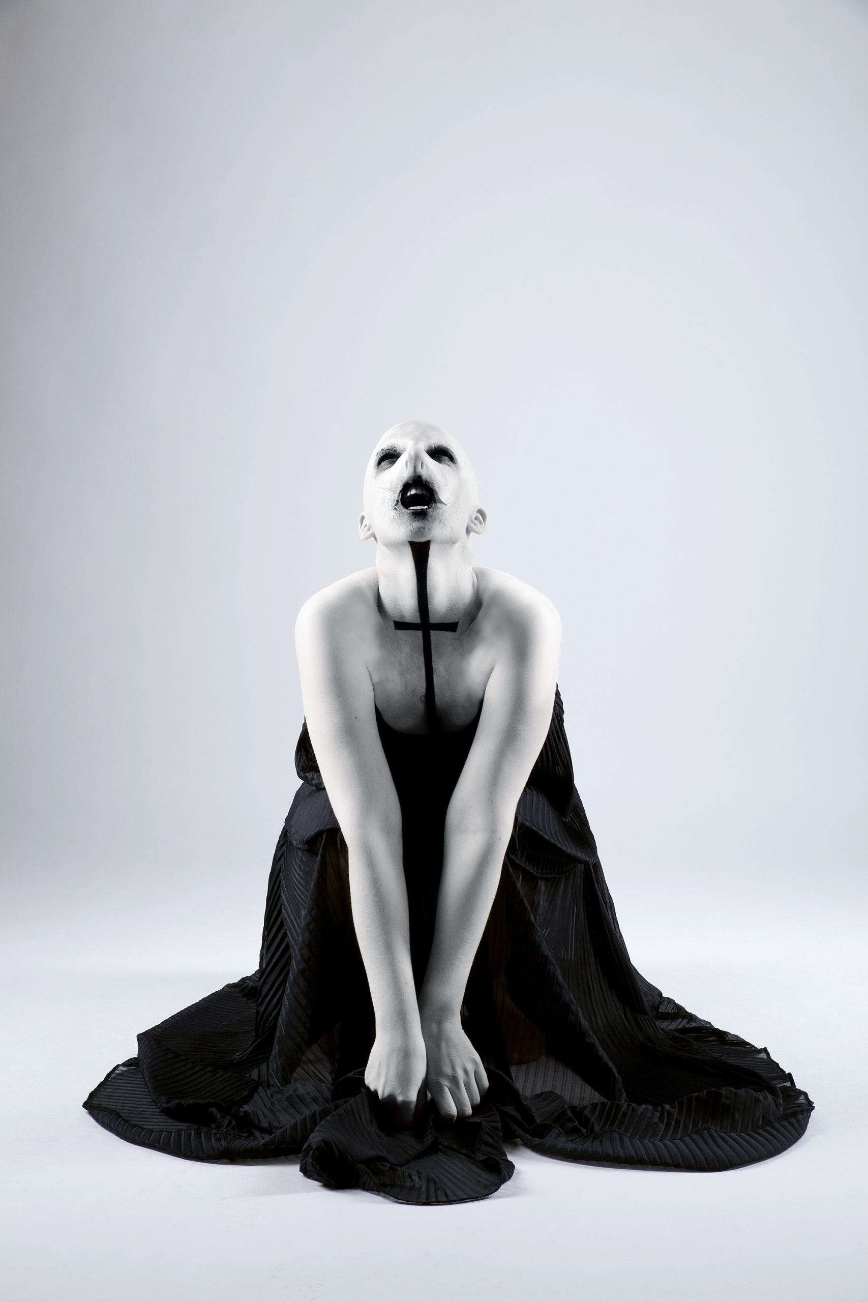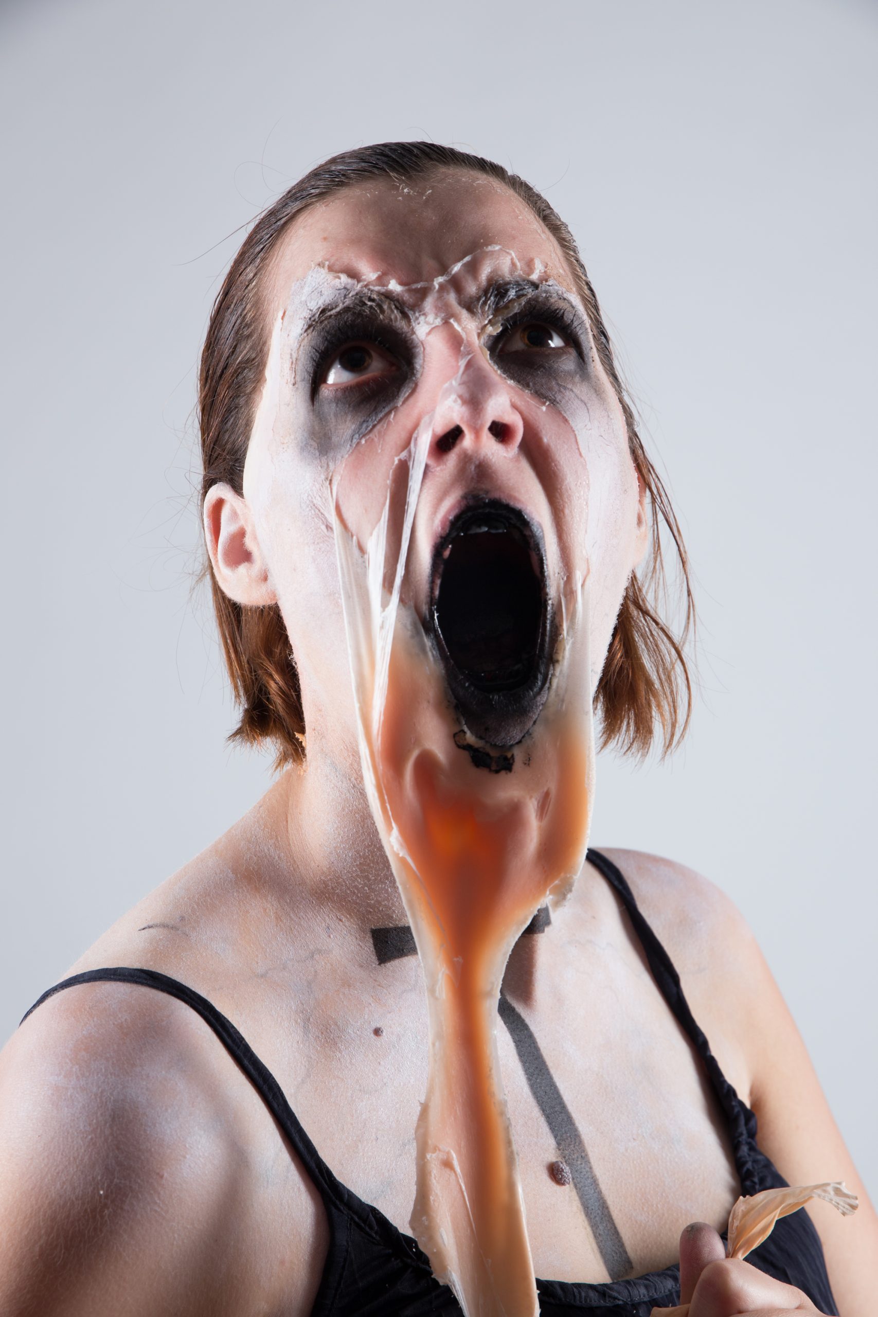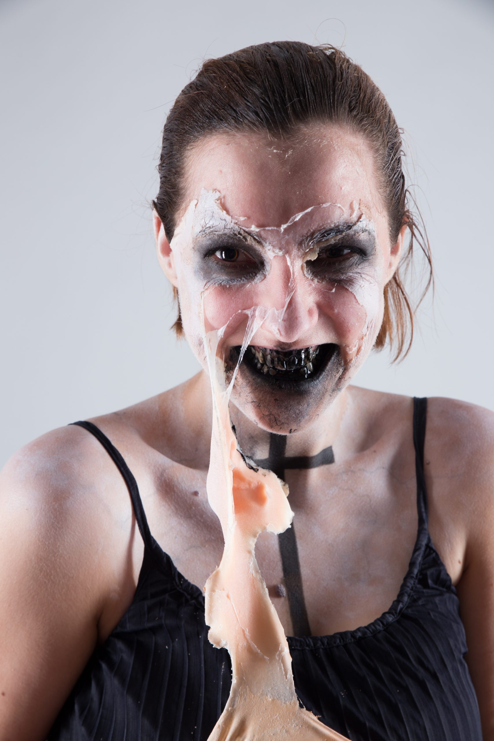 Für den „No-Nose-Look“ habe ich im Vorfeld einen Nasenabdruck von Barbara genommen. Am Tag des Fotoshootings kam eine angefertigte Glatze über ihre Haare. Die vorgefertigte Nase wurde aufgeklebt und anschließend mit Airbrush und Pinsel bearbeitet. Maximilian machte für uns diese tollen Fotos.